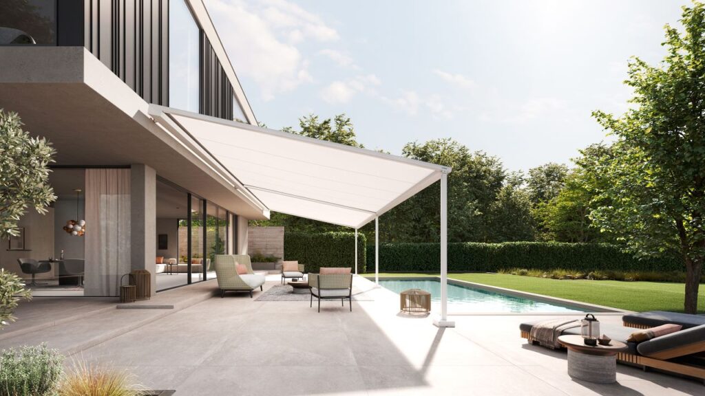 Pergola markis för älskare av tydlig design och enkel elegans med mycket komfort
